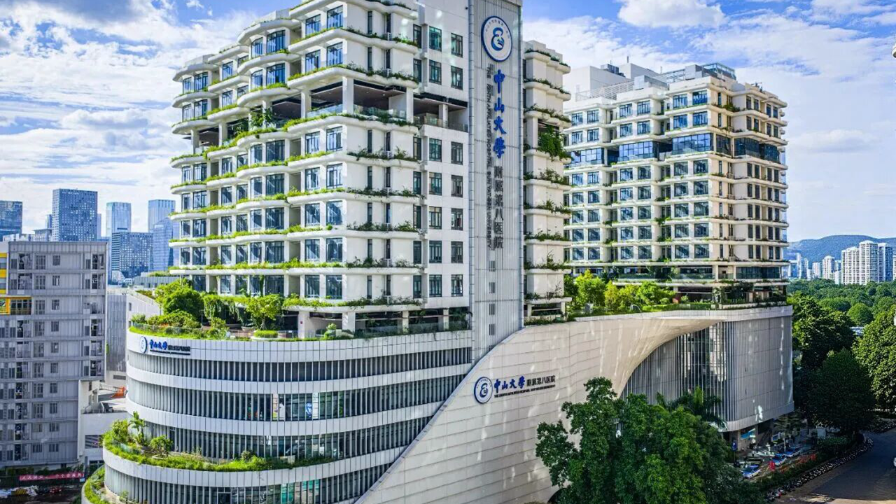 An exterior view of the Eighth Affiliated Hospital of Sun Yat-sen University, located in Shenzhen’s Futian District.