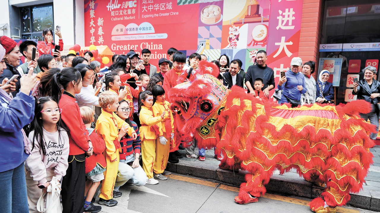 Children gather to watch a lion’s dance at the “Hello APEC” Shekou Culture Market. Courtesy of Shekou MSCE