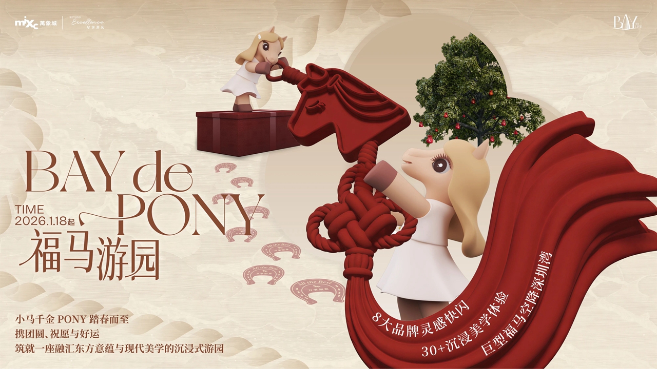 Themed “BAY de PONY,” the fair draws inspiration from the Spring Festival and the Chinese zodiac sign of the horse. It brings together Shenzhen Bay MixC’s original horse-themed IP “Pony” and universal Chinese New Year wishes, creating a lineup of installations for visitors to interact and photograph.
