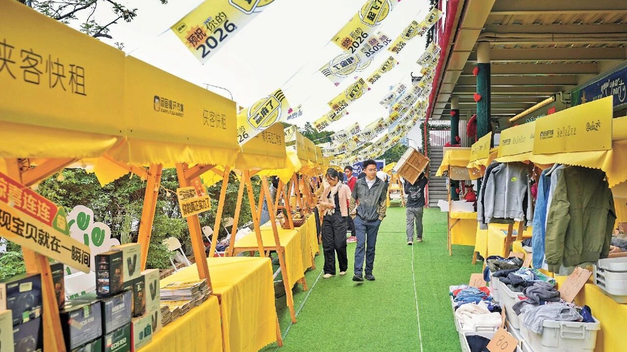 Shoppers browse secondhand goods at the outdoor market area of Xianyu’s flagship store in Tianmian Cultural and Creative Town, Futian District. Photos by Shenzhen Special Zone Daily