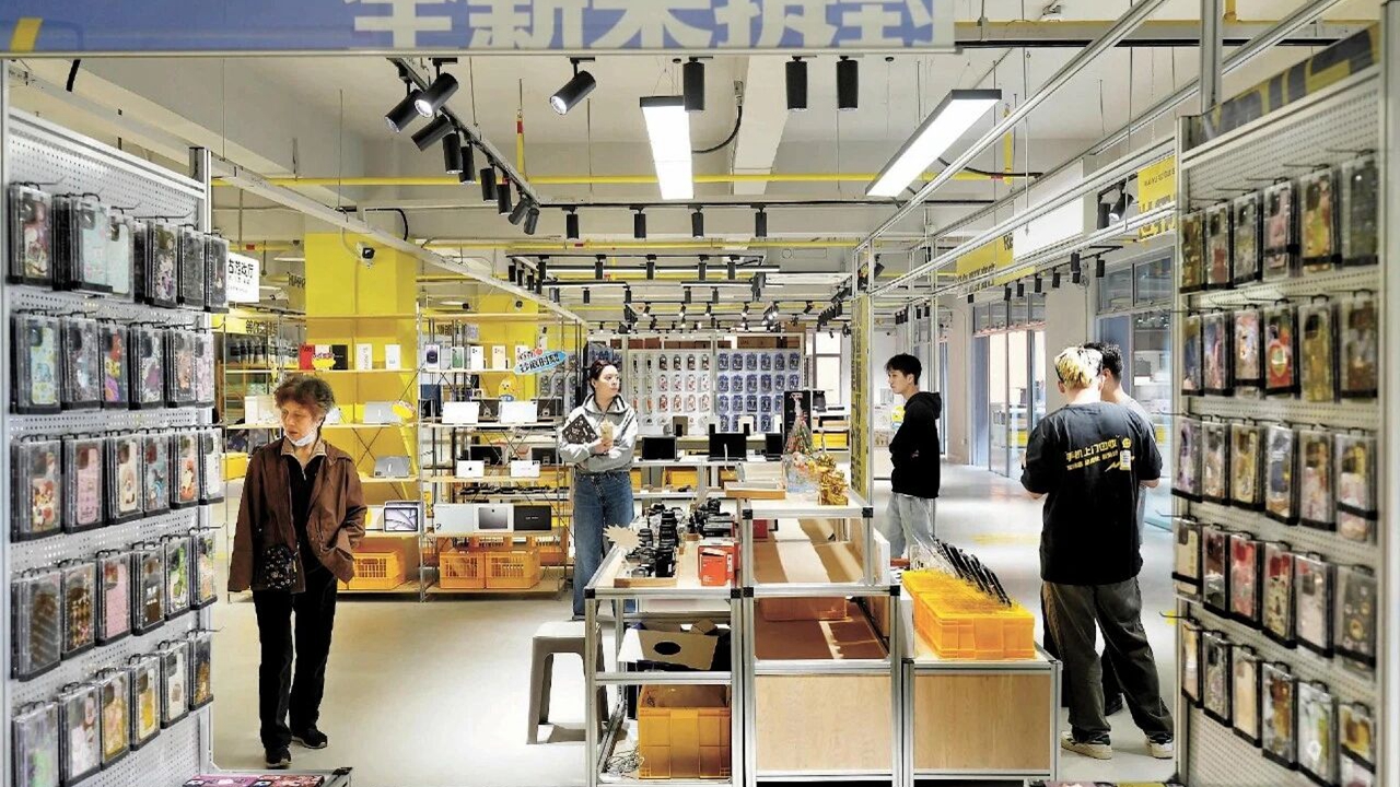 Shoppers browse secondhand items inside the Xianyu flagship store at Tianmian Cultural and Creative Town.