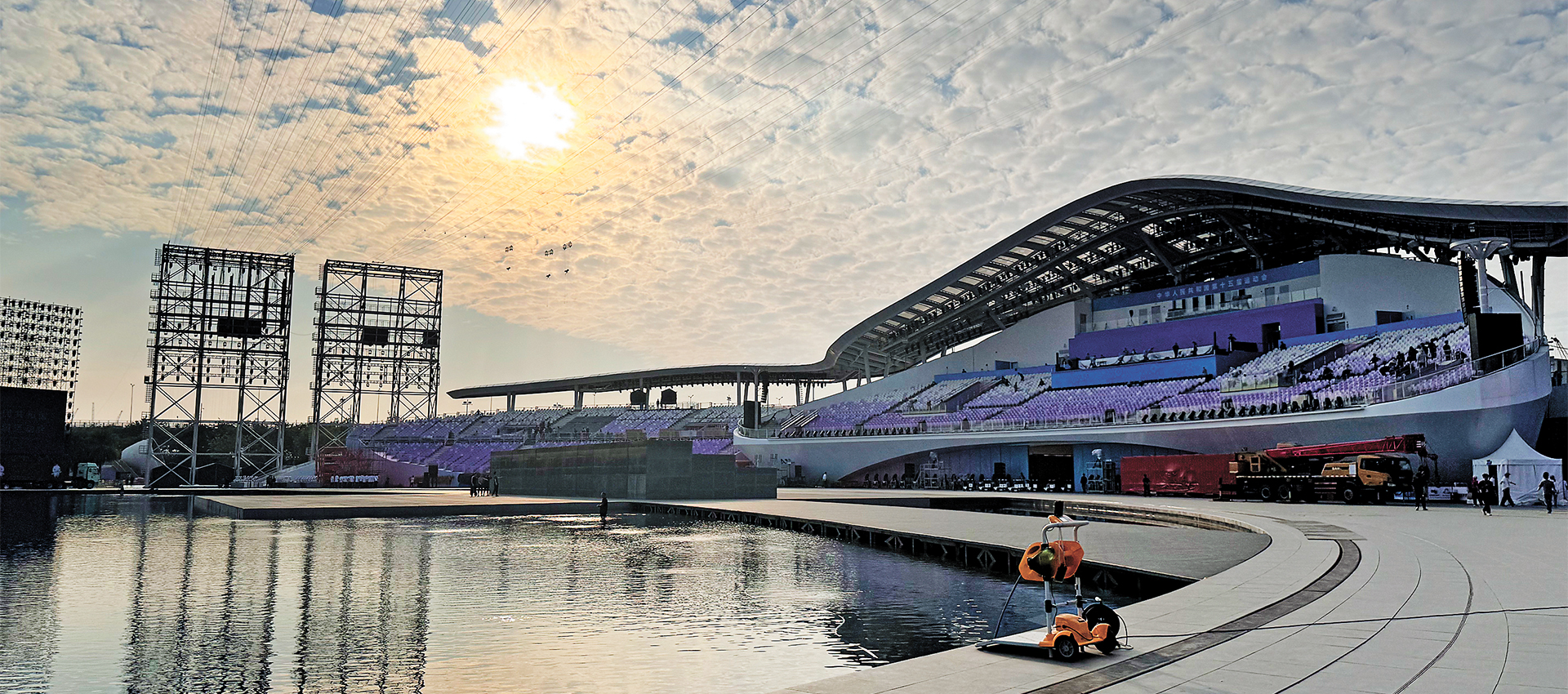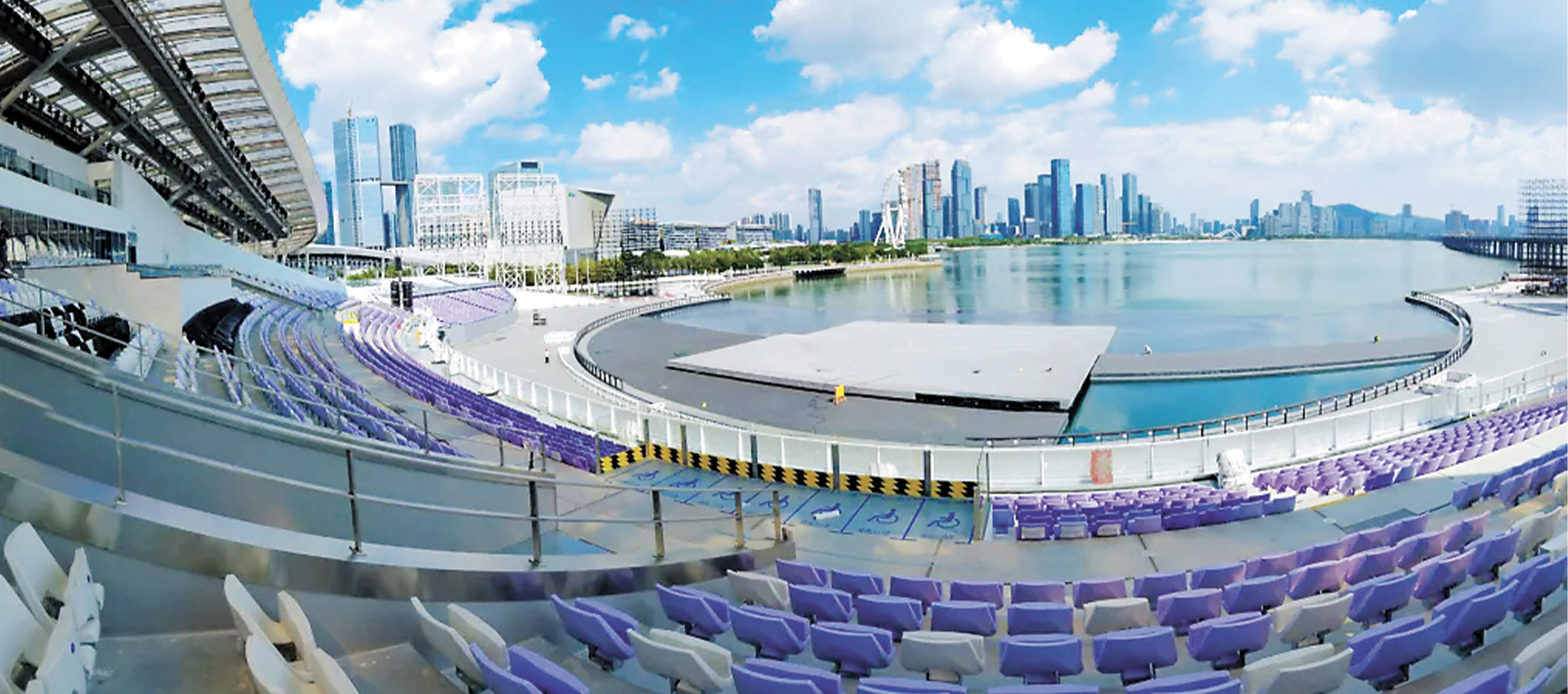 The theater redefines performance spaces through its innovative integration of sea and cityscape, featuring a water stage that blends music with the sound of the sea. The Bay Glory Ferris wheel also becomes part of the stage aesthetics, creating an immersive seaside experience where art meets nature.