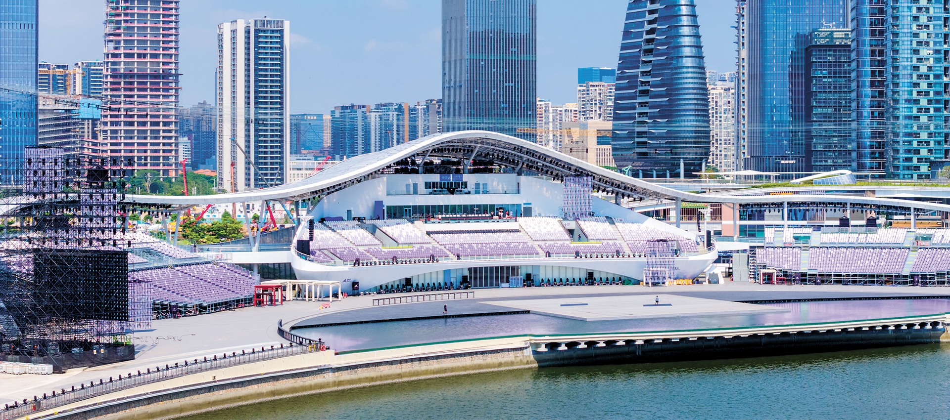 Happy Theater, a waterfront venue, is located on the west side of OH Bay in Bao’an District. Situated by the sea with the Bay Glory Ferris wheel as a backdrop, the theater serves not only as a performance venue but also as a cultural hub for exchanges across Guangdong, Hong Kong, and Shenzhen, and for dialogues between art and urban life.