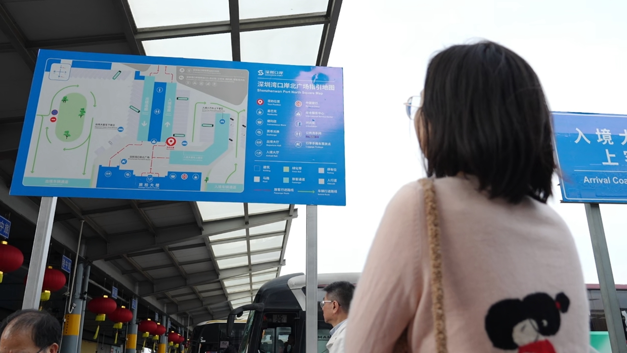 A participant examines English translation on a map sign in Shenzhen Bay Checkpoint. Photos by Qiu Weibin