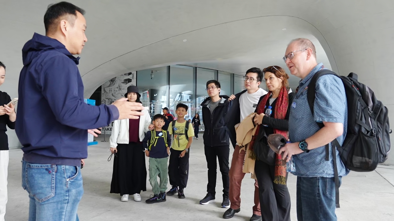 Participants listen as a Shenzhen Bay Culture Square staffer introduces the venue.