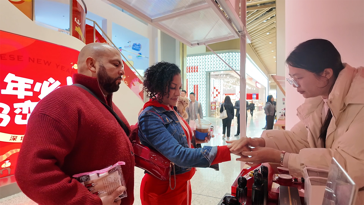 A promotional event for “Pingshan Premium Products” is under way at “Pingshan Station,” an urban promotion space located in the underground City Hub plaza near Gangxia North Metro Station in Futian District, attracting expats ahead of the Spring Festival. This event forms part of the “Guangdong Goods” campaign, which promotes products made in Guangdong Province.