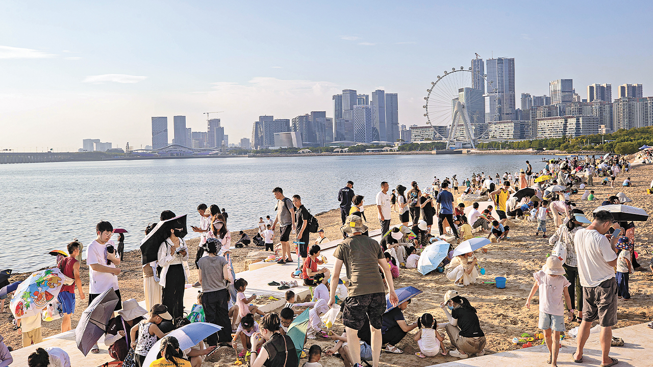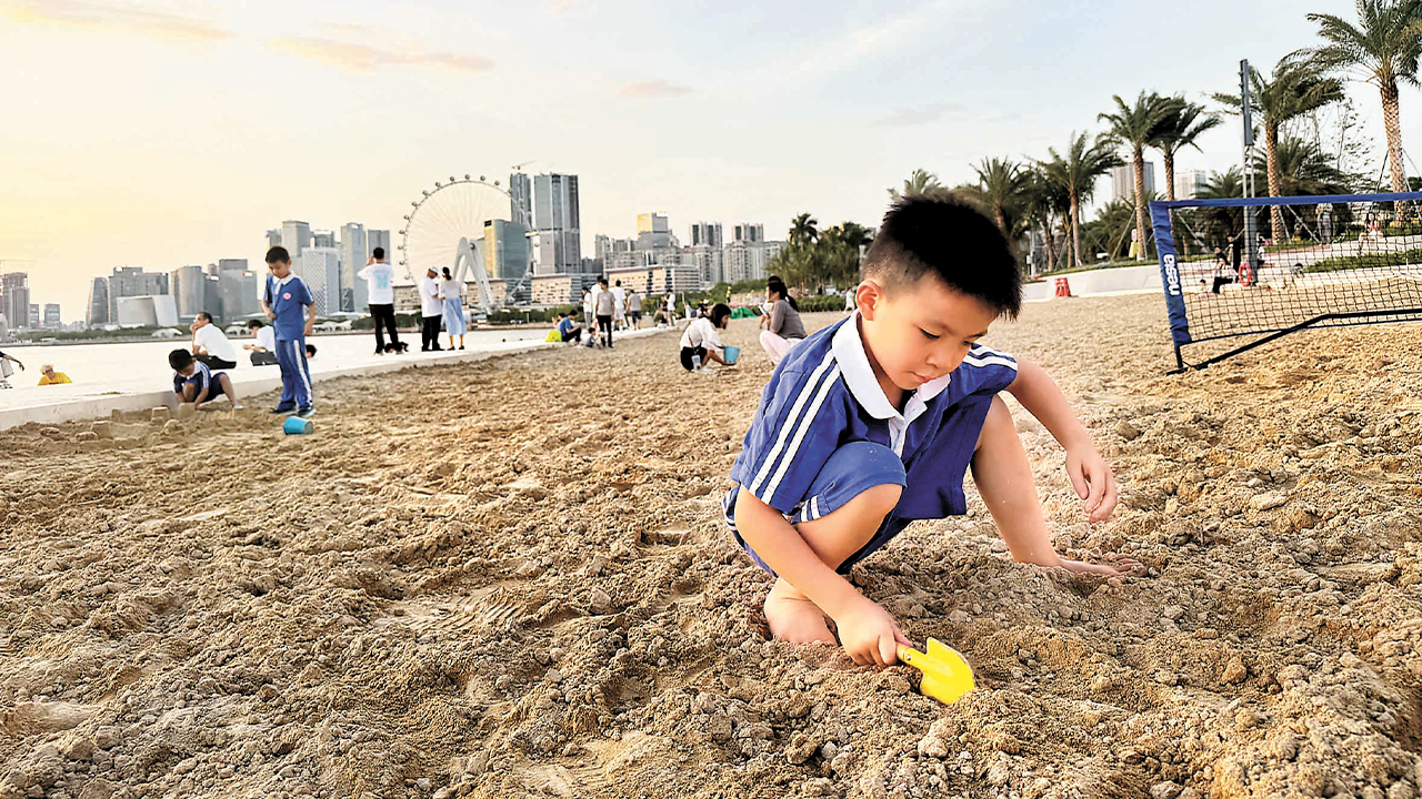 Children play sands at the beach. Photo from Shenzhen Evening News