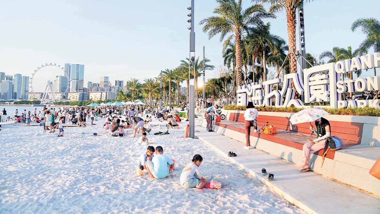 At the beach at the Guiwan section of Qianhai Stone Park, visitors can soak in a distinctive city-by-the-sea view, jog on waterfront paths, and play with children in the waterside square. Future programming may include beach volleyball, music festivals and outdoor movie screenings.