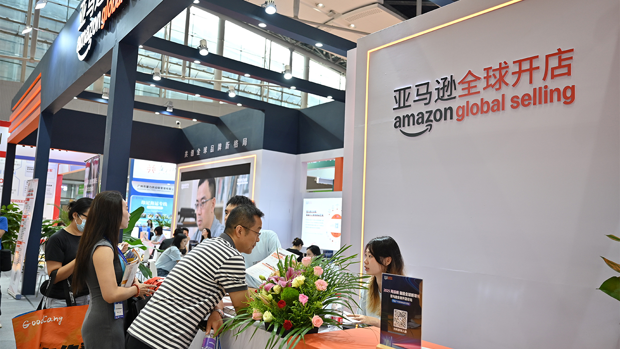 Amazon’s booth at the 2025 China (Guangzhou) Cross-border E-Commerce Fair held in Guangzhou in August, 2025. Photo from China News Service
