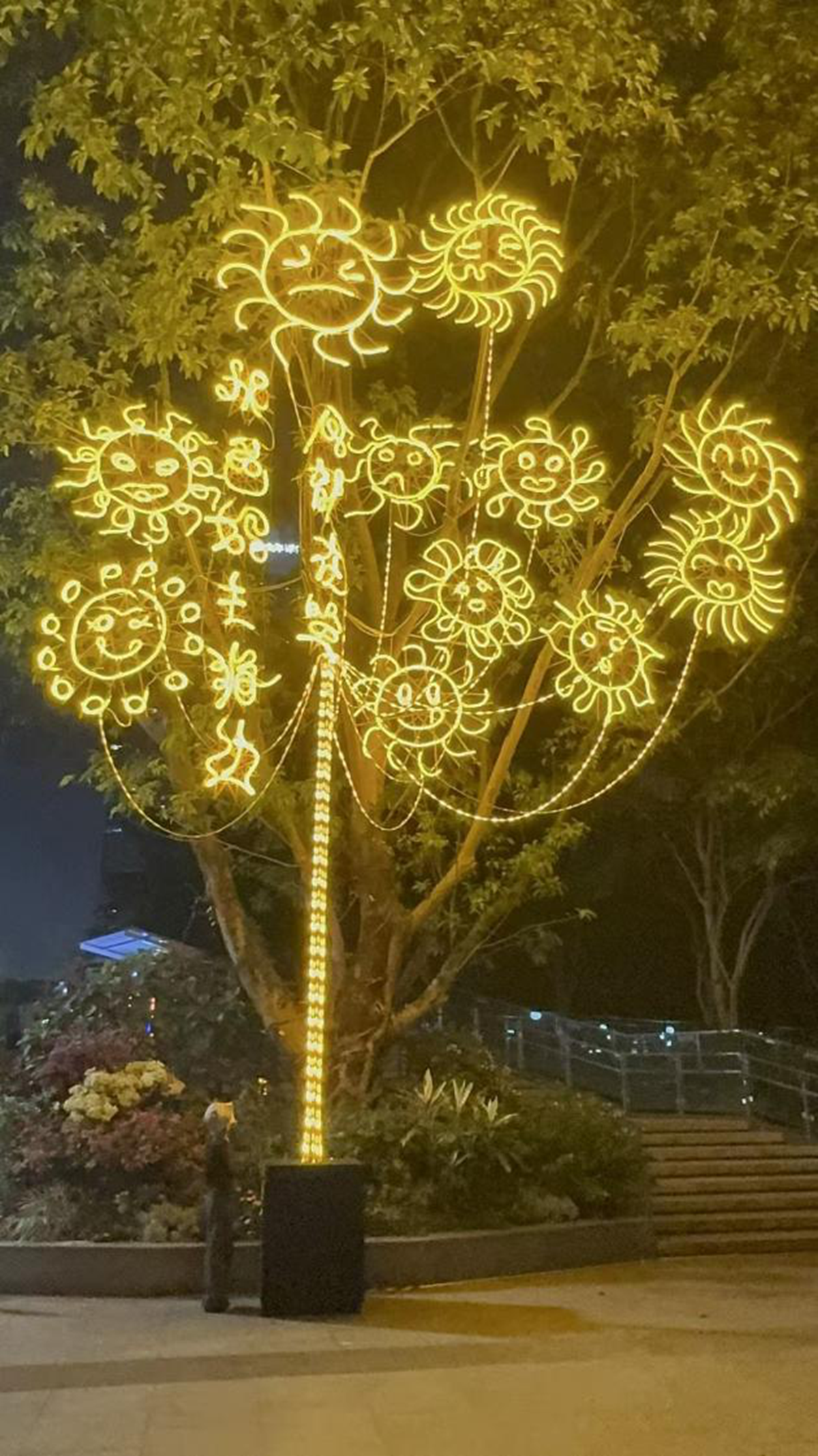 A tree with lights in Lianhua Hill Park. Lin Songtao