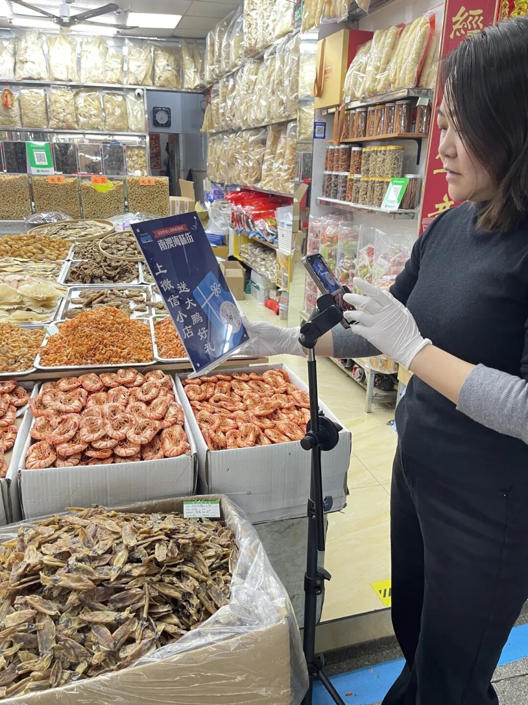 More than 85% of the merchants now operate online stores, and over half have adopted livestream sales. Shops display standardized signs inviting visitors to scan QR codes to browse products, place orders, or arrange delivery directly to friends and family. Dapeng New Area has also introduced a compensation and regulatory framework for resolving consumer disputes.
