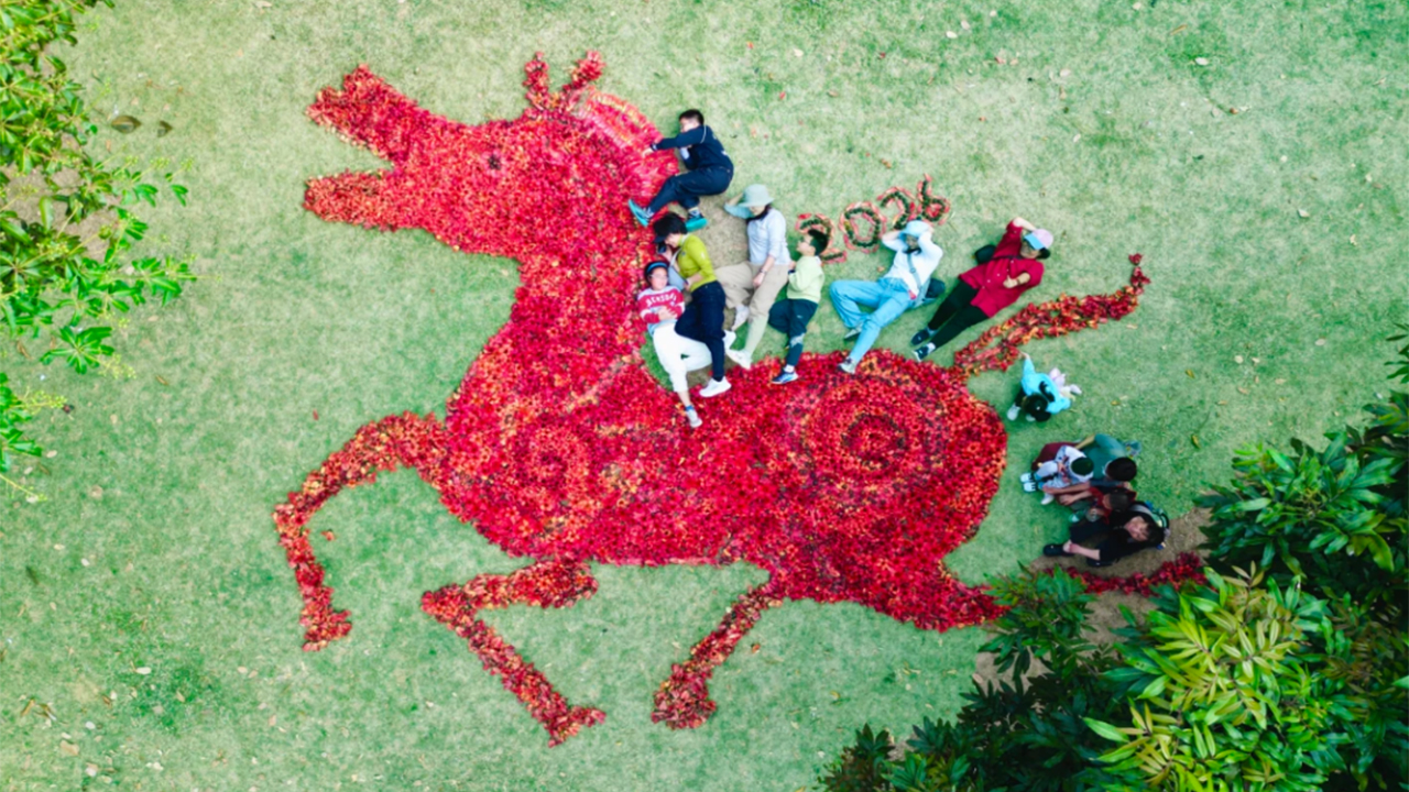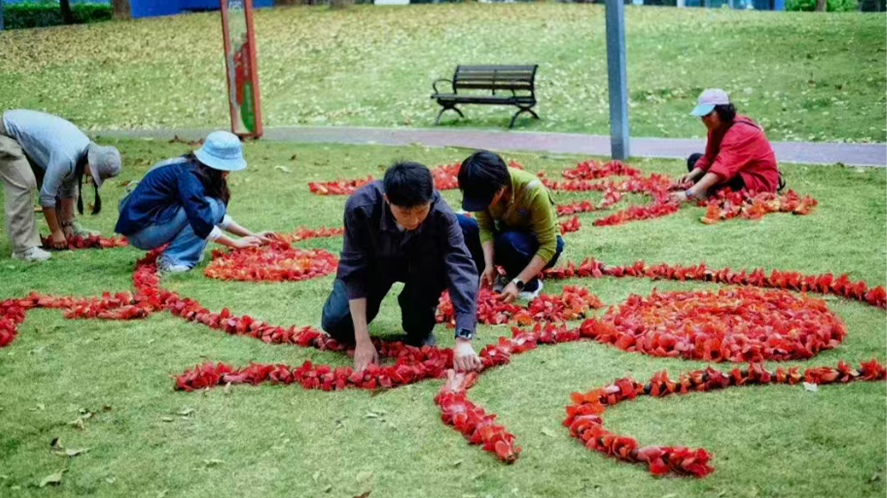 Recently, a “red horse” made from thousands of kapok flowers on the lawn of Jingmi Community Park in Futian District went viral on social media. It’s not a sculpture, and it’s not an AI-generated image. It’s made by actually placing the flowers together one by one. Under the sunlight, the vibrant red is dazzling.