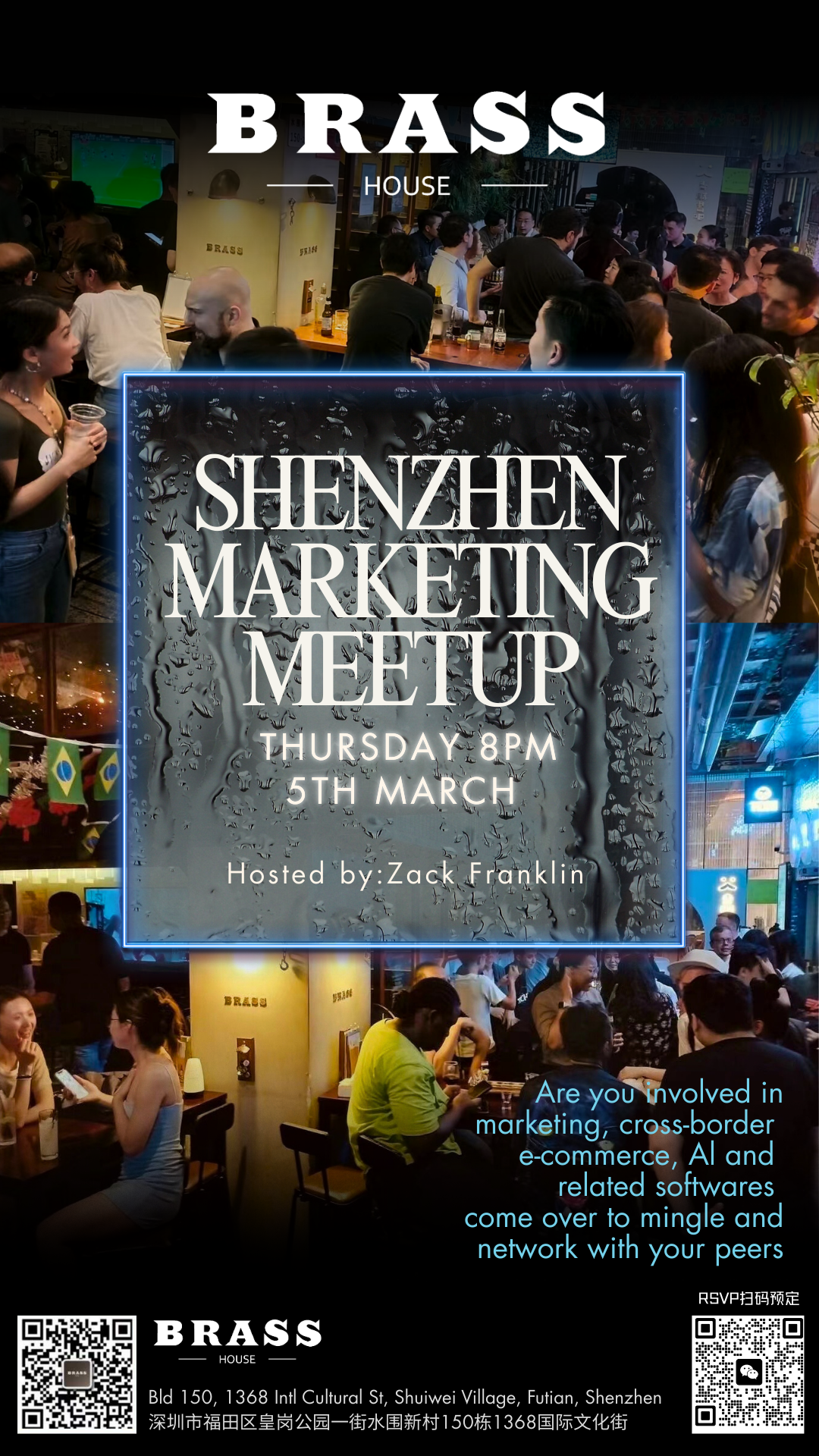 Shenzhen Marketing Meetup is back! This is an evening for builders, marketers, e-commerce operators, and AI founders to connect in a relaxed setting with the right crowd. Real conversations. Useful connections. No formalities.