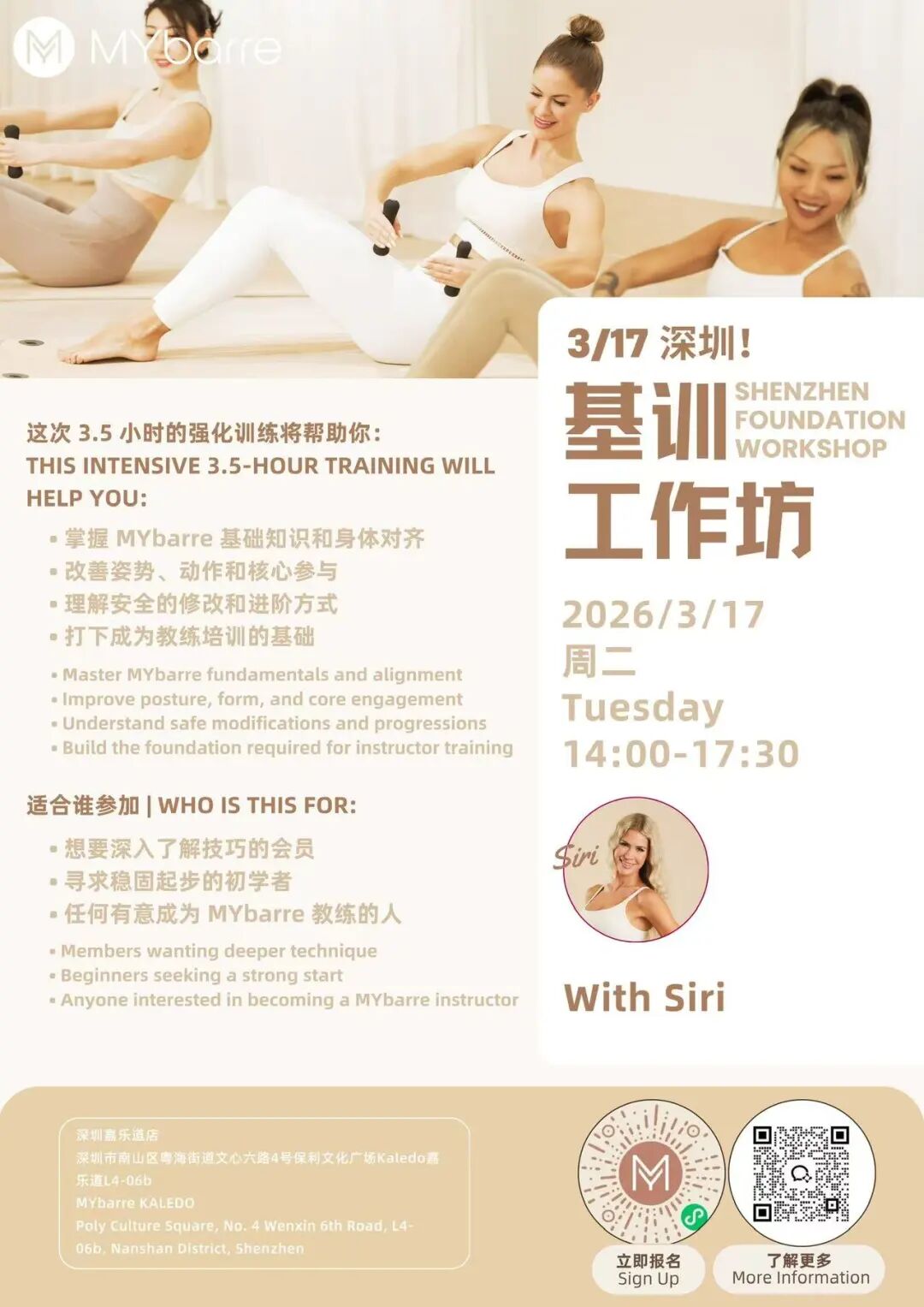 MYbarre's 3.5-hour workshop will help you master MYbarre fundamentals and alighment, improve posture, form, and core engagement, understand safe modifications and progressions, and build the foundation required for instructor training.