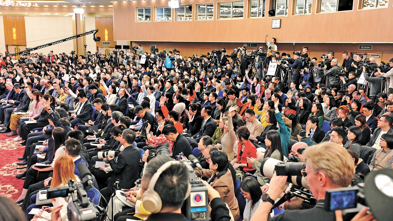 Journalists attend a press conference on China’s foreign policy on the sidelines of the annual session of China’s top legislature in Beijing yesterday. China News Service