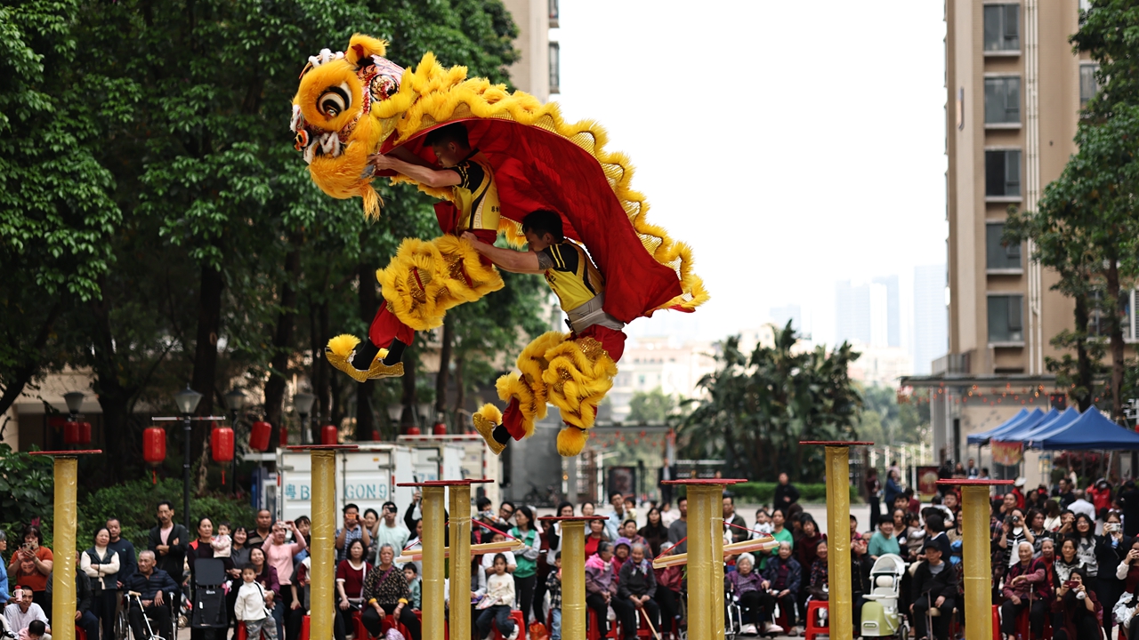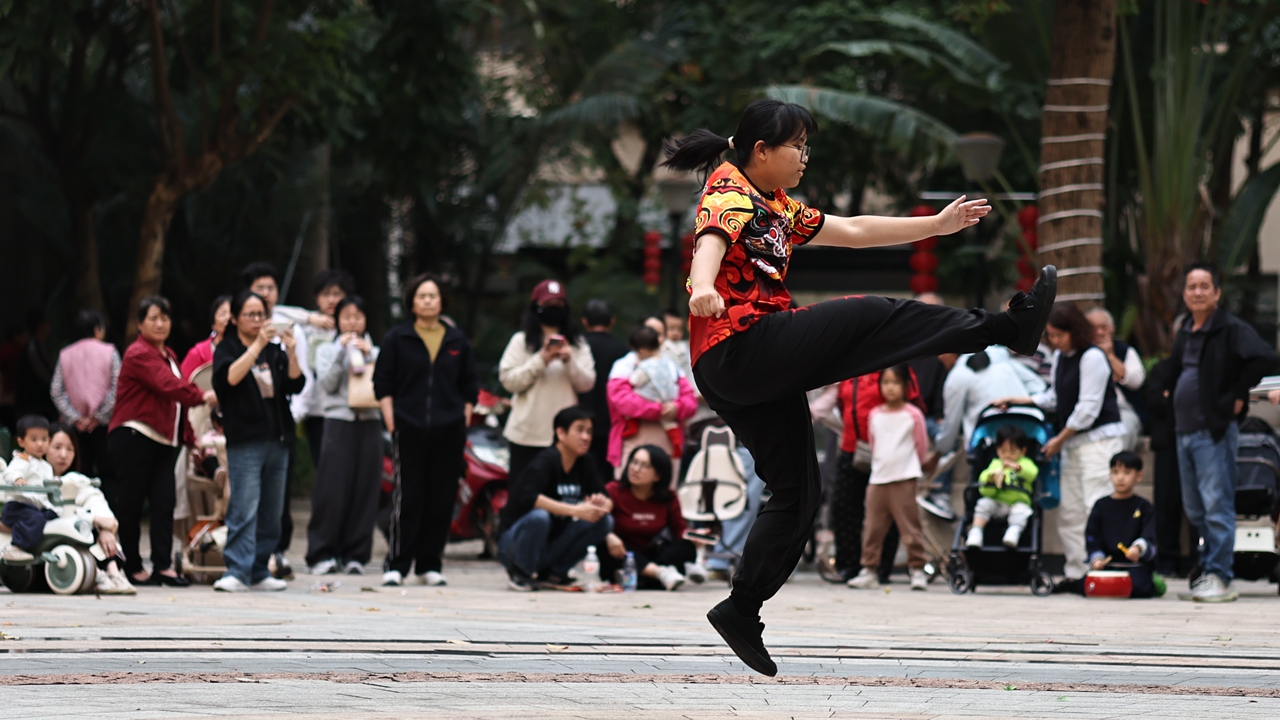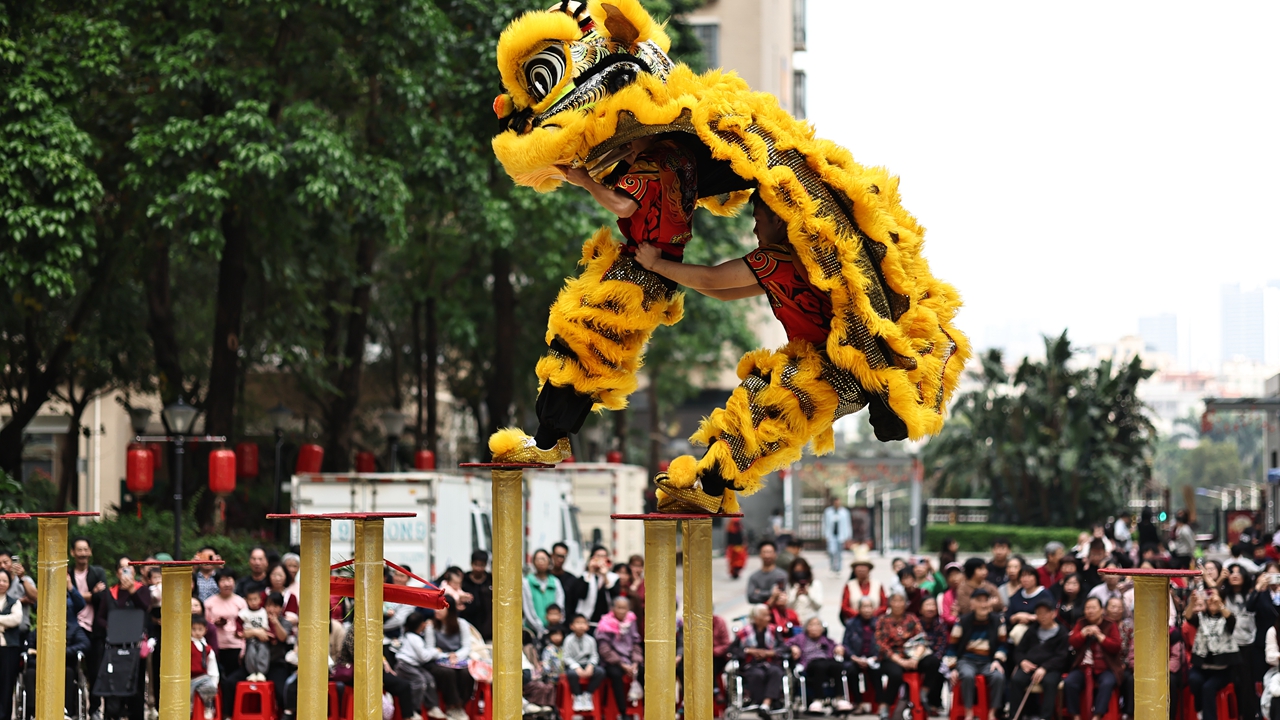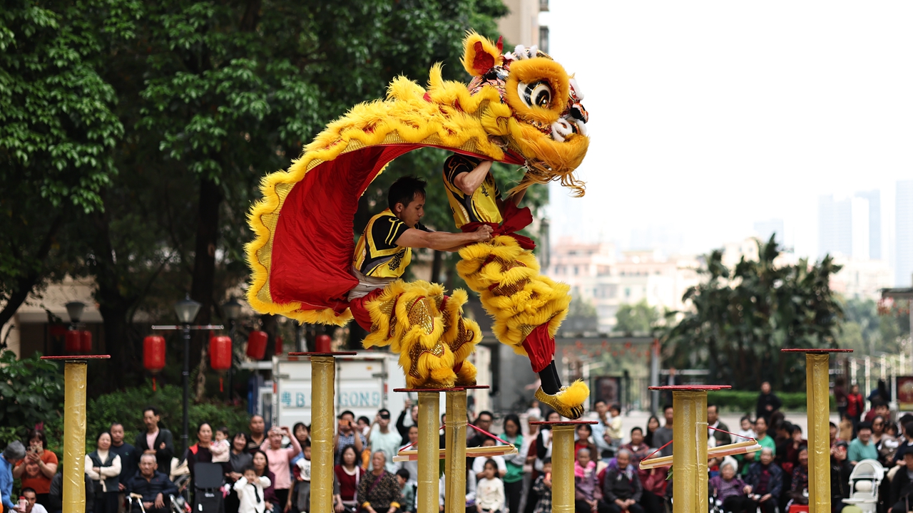 Representing another pillar of Shenzhen's intangible cultural heritage, the Huang Liansheng Lion Dance Team (established in the 1970s) demonstrated the martial soul of the lion dance perfectly during Saturday's event. Their performance was a master class in dynamic athleticism, featuring explosive leaps and agile pounces grounded in foundational martial arts stances, such as the Horse Stance. Governed by core principles like breath control (Qi) and internal energy circulation, every rhythm and acrobatic feat embodied the essence of Kung Fu. This seamless fusion of explosive vigor and supple elegance transforms the lion dance into a living emblem of China's philosophical ideal: harmonious strength, where disciplined martial prowess meets festive tradition.