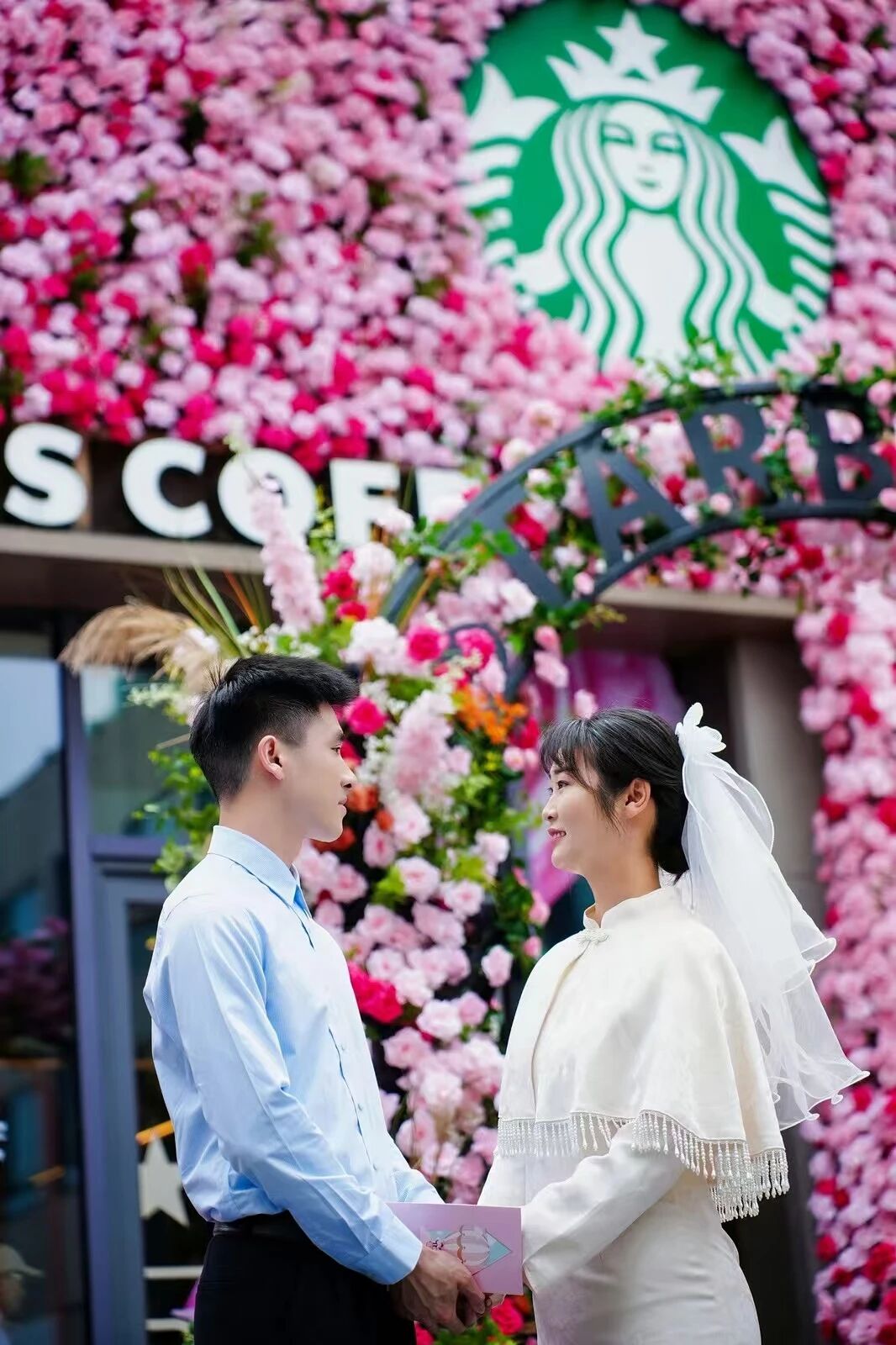 Starting March 7, more than 160 Starbucks stores across multiple Chinese cities have “blossomed” into rose-themed experiential spaces, extending the floral fantasy from Shenzhen to Beijing, Guangzhou, Hangzhou, and beyond. The romance reached its peak on the morning of March 7, when the Futian District Civil Affairs Bureau partnered with Starbucks at the Shenzhen flagship to host a rose-themed collective wedding certificate ceremony.