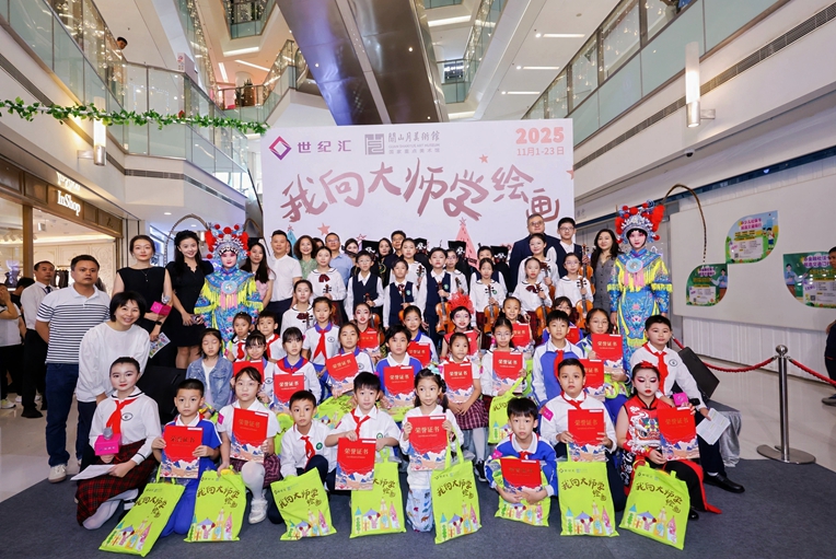 Eighty-five paintings created by local primary school students are on display at the “Learning Painting From Masters” exhibition at the Century Place shopping mall in Huaqiangbei, Futian District.