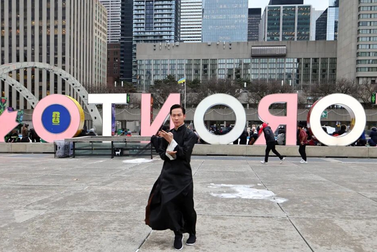 Five lead actors from the hit Shenzhen dance drama “Wing Chun” took to the streetsto film a flash mob video in Toronto on Friday, local time.