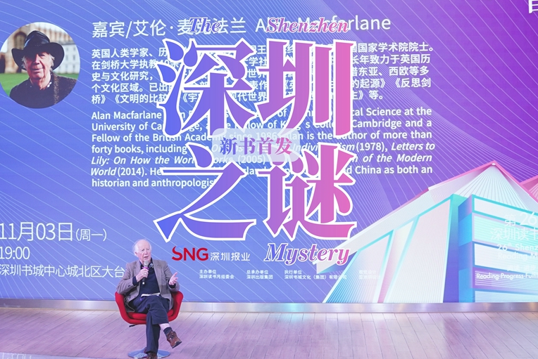 The 2025 Shenzhen Reading Forum and the launch of British anthropologist Alan Macfarlane’s new book “The Shenzhen Mystery” took place at Shenzhen Book City CBD Store in Futian District on Nov. 3. Macfarlane hosted a sharing session and engaged in in-depth conversations with several interviewees featured in the book.