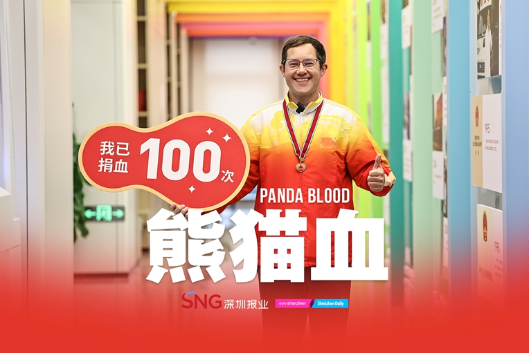 Heráclito Everson Biscaia Filho, a Brazilian expat living in Shenzhen, made his 100th blood donation at Shenzhen Blood Center on Nov. 30.