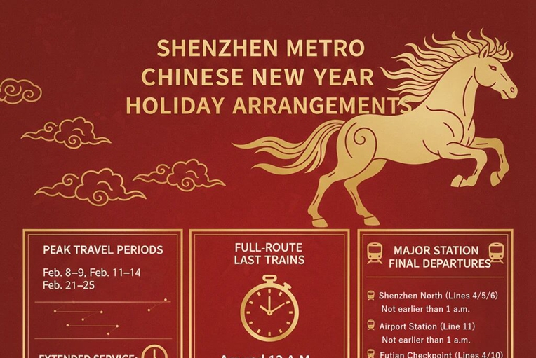 To accommodate the Spring Festival travel rush, Shenzhen Metro and MTR Shenzhen will extend train service across the network under a “11+8+7” plan, ensuring smoother journeys during one of the busiest travel seasons of the year.
