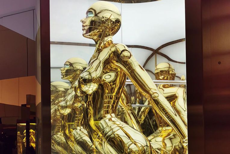Hajime Sorayama's metallic "Sexy Robot" sculptures are familiar to many art lovers, but seeing an exhibition featuring many of these shiny, sensual femme-bots — each in a distinct pose — is a different experience.