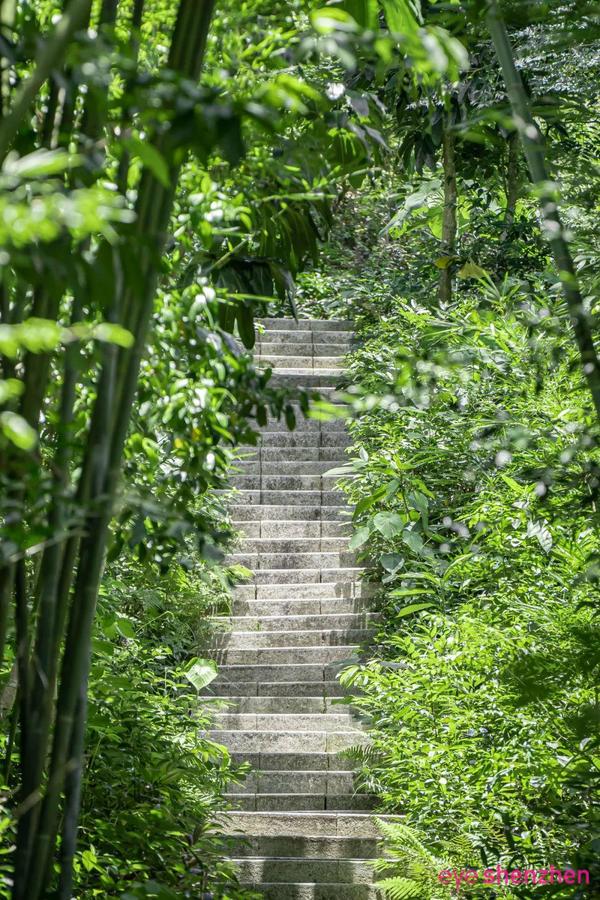 Stone steps winding through bamboo forest at Cuizhu Park