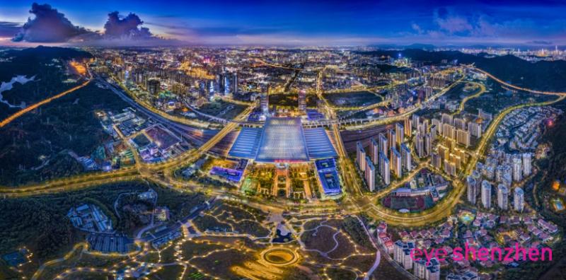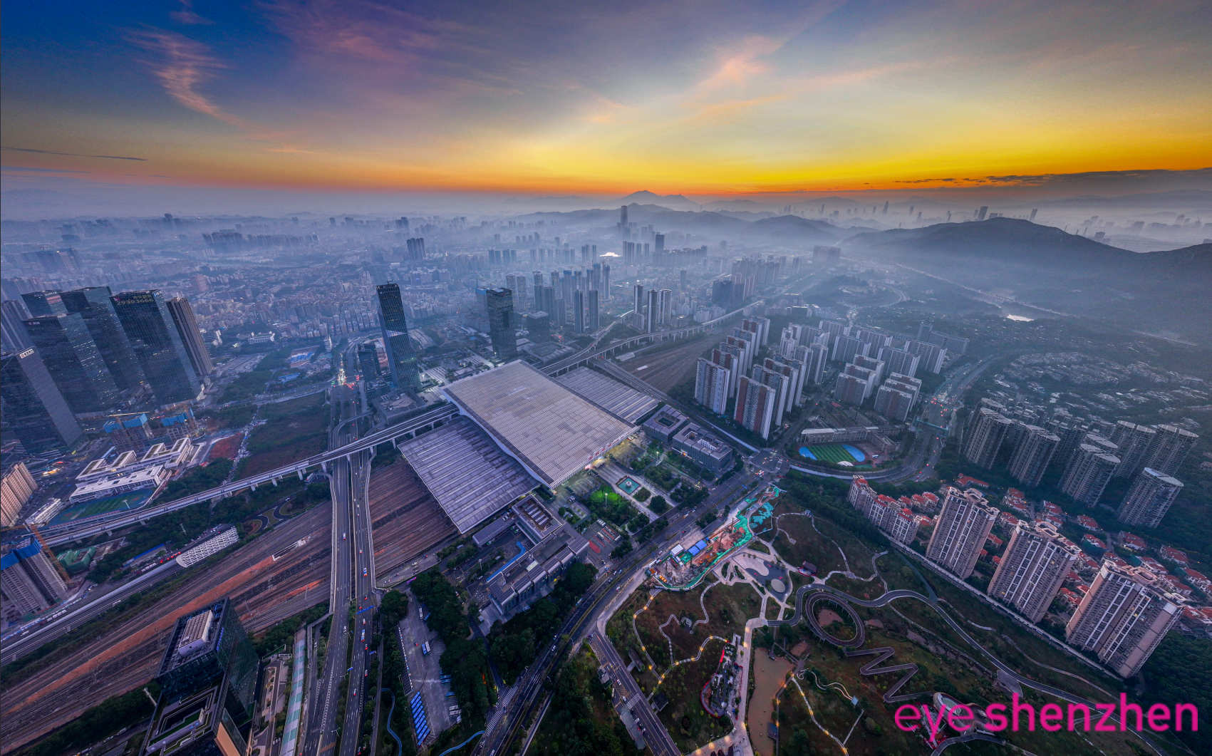 Aerial splendor: Shenzhen North Railway Station International Business District at dawn
