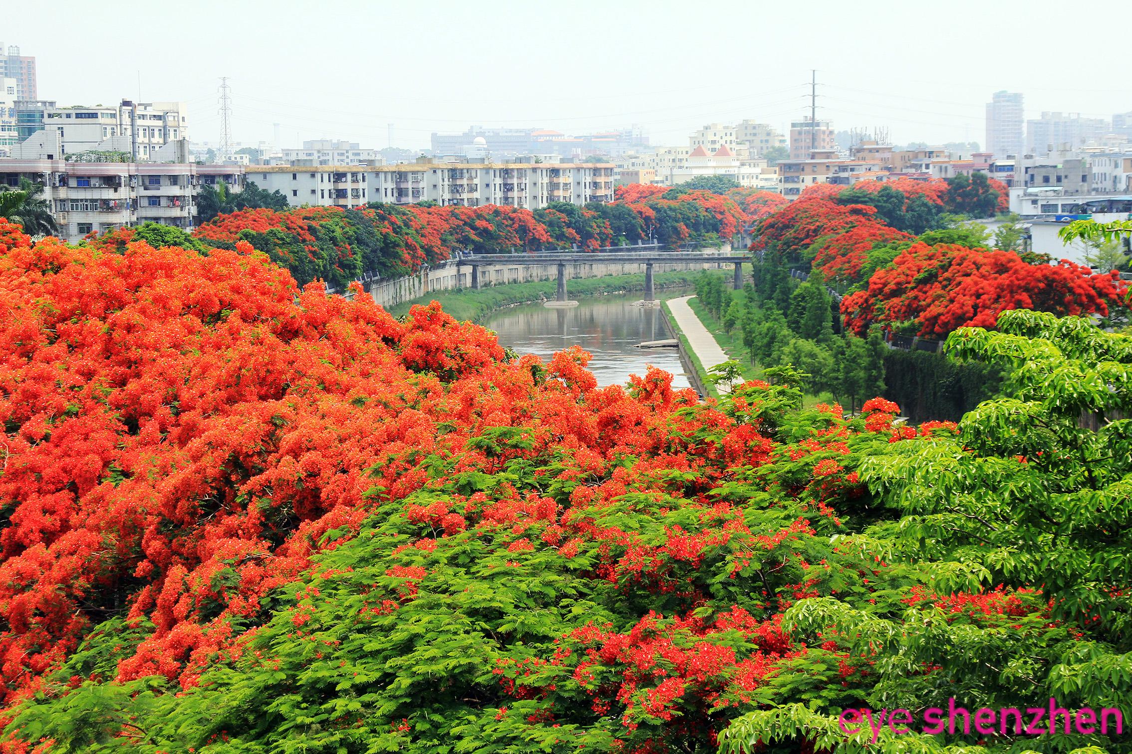 Flowers blooming by the Guanlan River