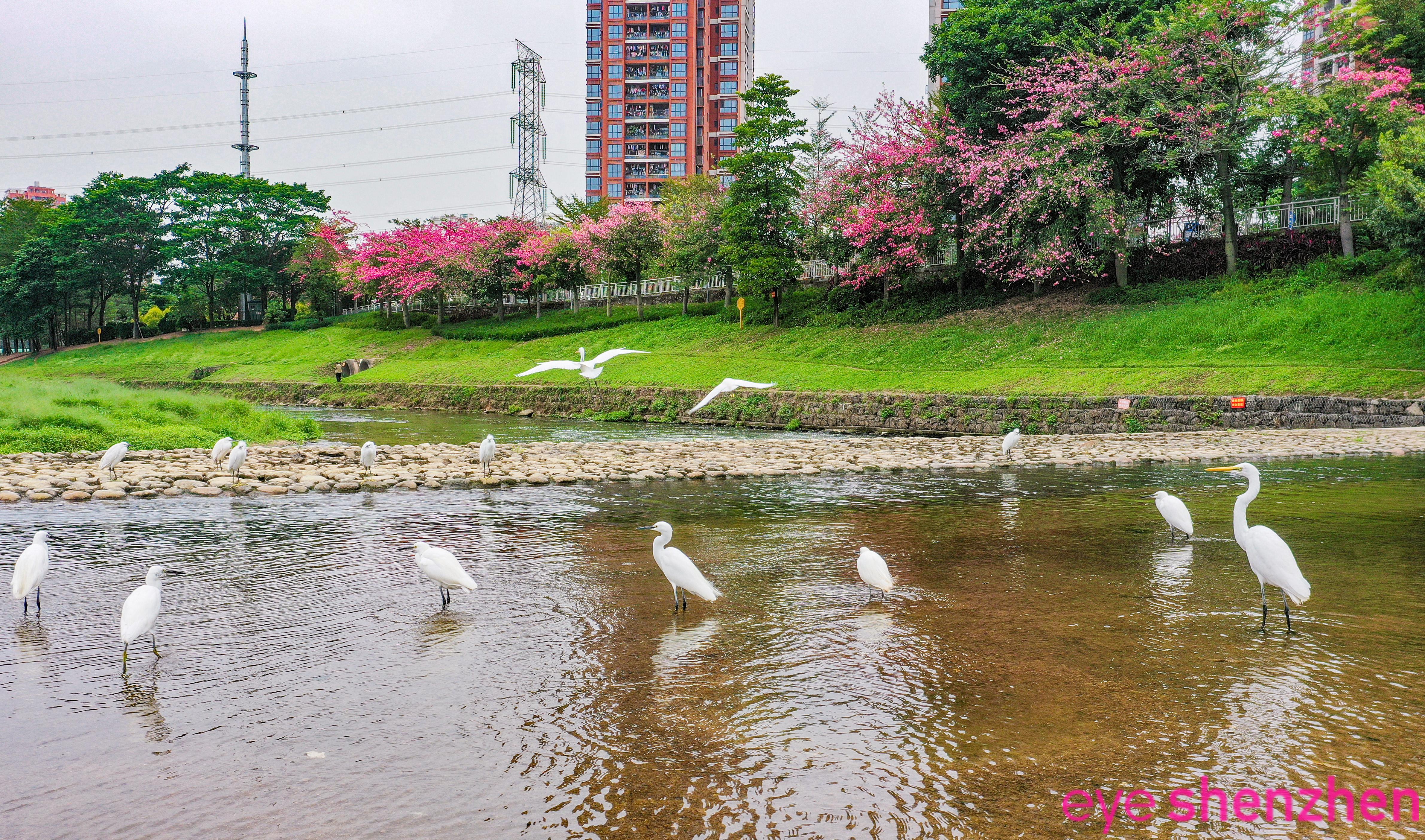 Clear water & white egrets: Guanlan River