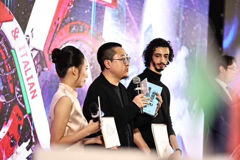 A Maserati parked like a time machine — gleaming, low-slung, and impossibly aerodynamic — drew a crowd at the north wing plaza of the Baoneng All City mall in Shekou, where Italian flair met Chinese curiosity at the Chinese/Italian Artists Exchange Program that kicked off Saturday afternoon.