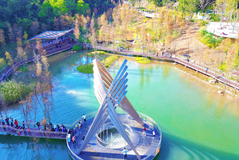 Huguang Tower is a landmark of the newly opened Shenzhen Reservoir Greenway (Phase II).