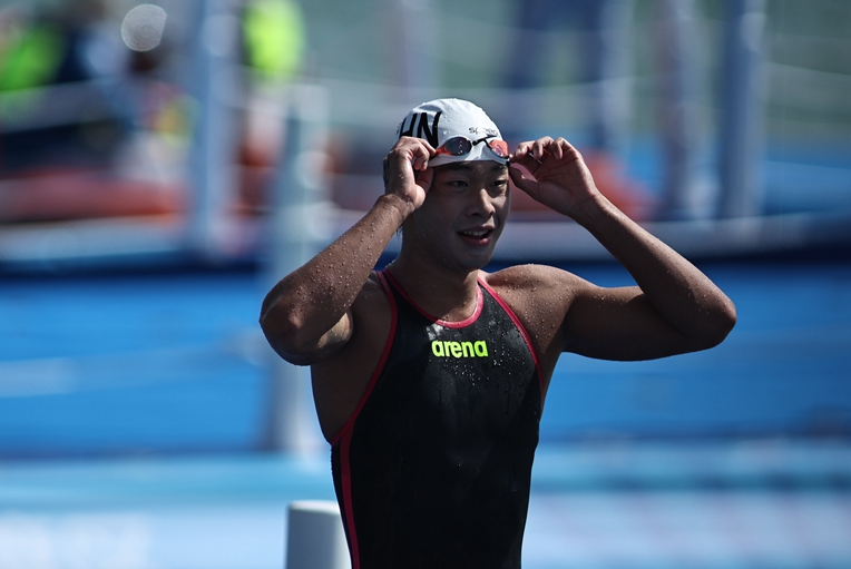 The men's 10km marathon swimming event of the 15th National Games concluded at Judiaosha Beach, Dapeng New District on Nov. 6. Zhang Ziyang of the Hubei team defended his title with a time of 1:59:55.3. The silver and bronze medals were claimed by Liu Peixin from Shandong Province and Lan Tianchen from Fujian Province, respectively.