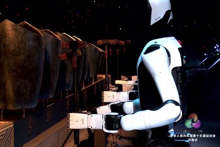 In a fusion of ancient heritage and cutting-edge technology, three humanoid robots played a set of 2,000-year-old bronze instruments Sunday night, marking a historic first for the opening ceremony of the 15th National Games.